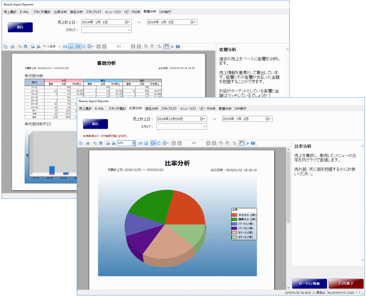 ビューティーエージェントレポーターを使用して充実した分析とレポート機能を提供致します。